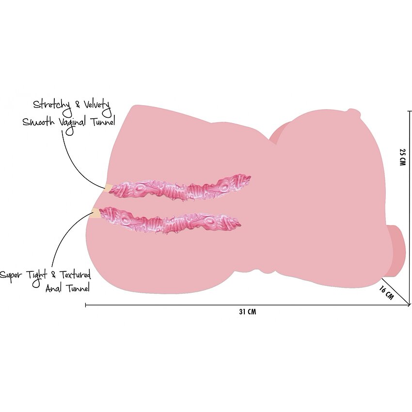 Beneficii și atribute: - Material: Realistic Love Skin, catifelat și flexibil - Canal intern texturat pentru stimulare variată - Detalii exterioare realiste și formă voluptuoasă - Greutate indicativă: 6 kg - Ușor de curățat; prescris lubrifiant pe bază de apă - Ambalaj discret și păstrare sigură