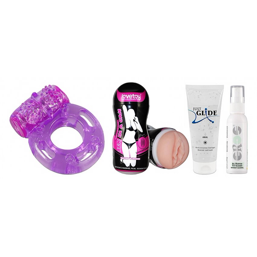 Detalii şi beneficii principale: - Inelul vibrator: realizat din silicon flexibil/TPE cu textură punctată pe stimulator pentru senzaţii sporite; design robust la apă şi compact, ideal pentru escapade; micul motor oferă sesiuni de aproximativ 40 minute (capsulă de vibraţii de unică utilizare). Culoare mov, proiectat pentru a susţine rigiditatea şi a amplifica senzaţiile reciproce. - Lubrifiantul Just Glide 200 ml: procedeu pe bază de apă, pH optimizat, vegan şi testat dermatologic; aferent cu latexul şi uşor de îndepărtat, transmite alunecare prelungită şi reduce disconfortul la atingere anal. - Spray îngrijire şi dezinfectare (fără alcool) 50 ml: curăţă delicat suprafeţele şi jucăriile lipsit de a le afecta, conţine Panthenol pentru protecţie auxiliară şi are dozator practic pentru aplicare rapidă. - Tunel de stimulare Lovetoy: realizat din Cyberskin pentru senzaţie realistă şi lungime interioară de 15,5 cm; include un accesoriu cu funcţie de aspiraţie pentru intensificarea senzaţiilor şi un gel special care optimizează alunecarea.