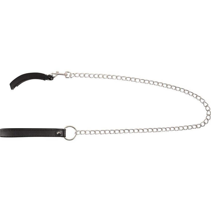 Clema sexuală Bad Kitty, curbată ergonomic, se atașează ușor cu arc și asigură stabilizare stabilă. Lesa metalică detașabilă (85.5 cm) are curea de încheietură din imitație de piele. Confecționată din ABS, metal și PU — robustă și ușor de folosit pentru jocuri de putere.