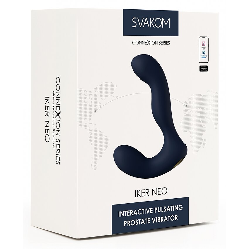 Iker Neo de la Svakom este un vibrator prostatic pulsant, cu siluetă bulbous și gât flexibil pentru poziționare precisă. Are 5 feluri de vibrație și 5 setări de pulsație, motor silențios, memorie, blocare pentru transport și control prin aplicația SVAKOM.