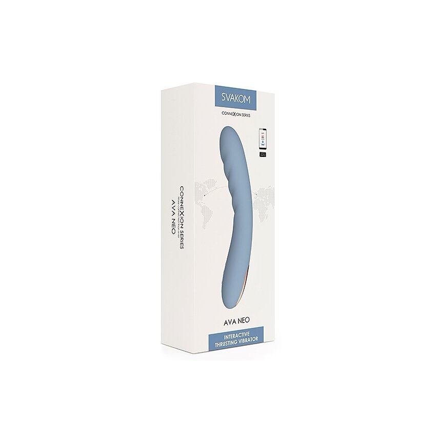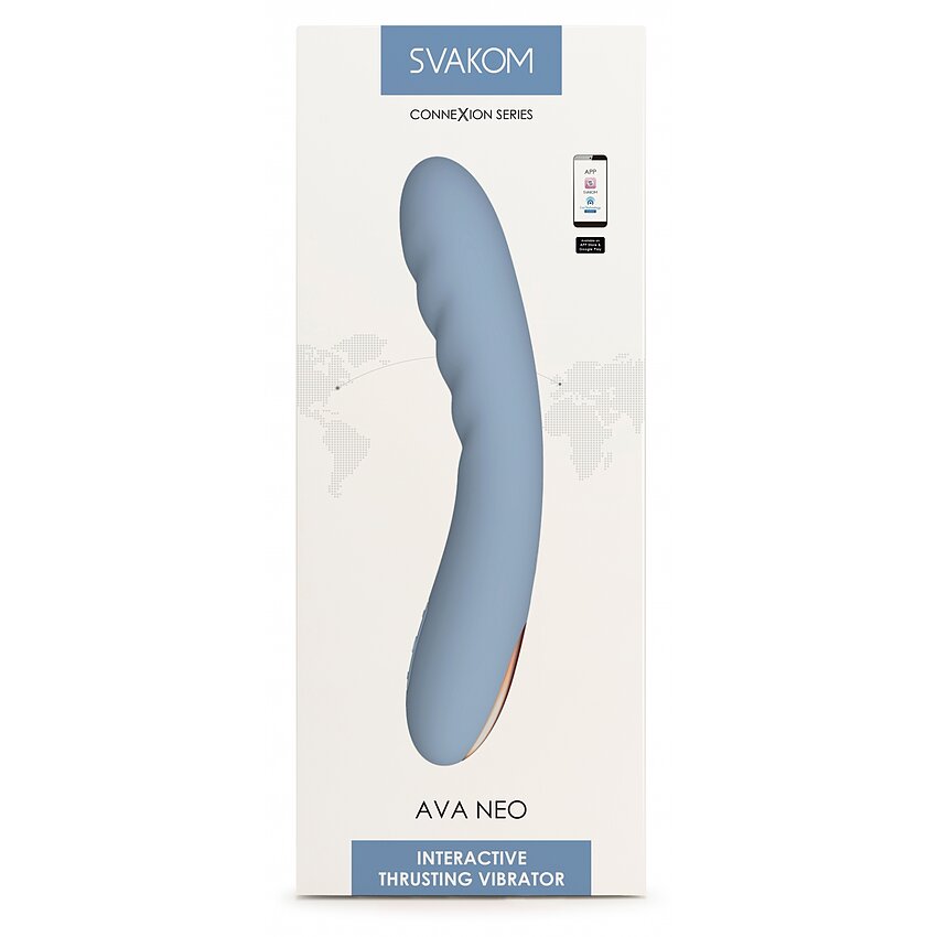 Ava Neo de la Svakom este un vibrator produs pentru stârnire profundă prin combinația de impingere și vibrație controlabile separat. Capul amortizat și suprafața din silicon lichid garantează glidare blândă și confort în utilizare. Designul submersibil îngăduie folosirea la duș sau baie și îngrijirea facilă.