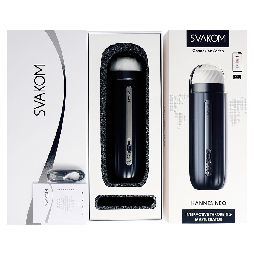 Svakom Hannes Neo — masturbator automat reîncărcabil, cu 5 feluri de pulsaţie și încălzire până la 38°C. Manson detașabil din TPE ultra-moale, inserție până la 15 cm, control local sau prin aplicație pentru control la distanță. Spălare rapidă.