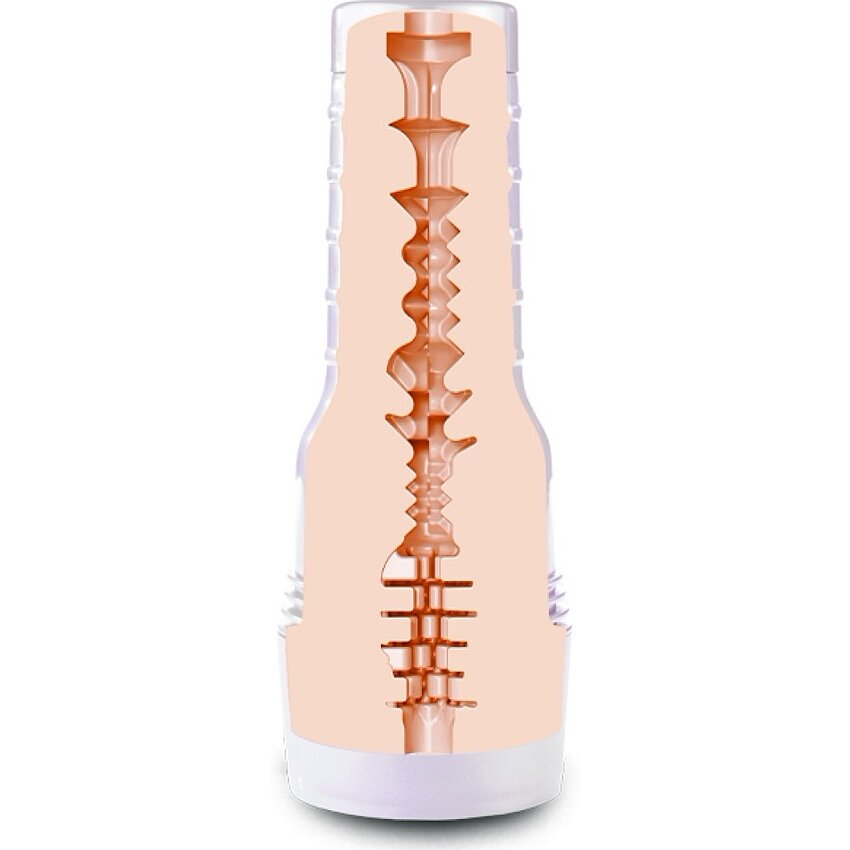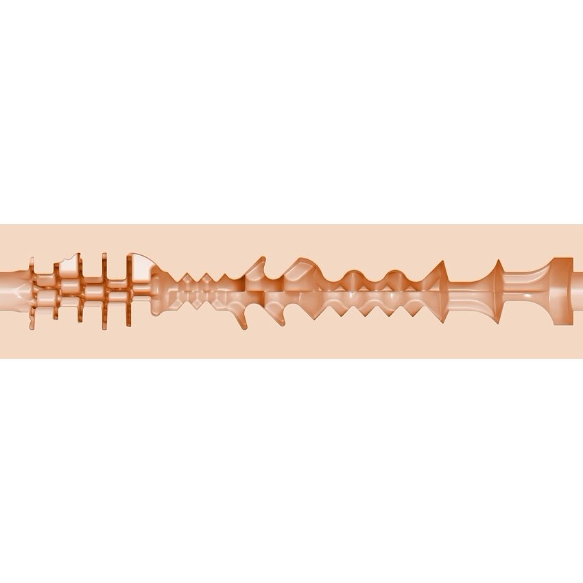 Interiorul combină straturi răsucite care conduc spre un centru notched, urmat de o cascadă de nervuri — configurație gândită pentru intensitate progresivă și senzaţii deosebite pe parcursul utilizării.