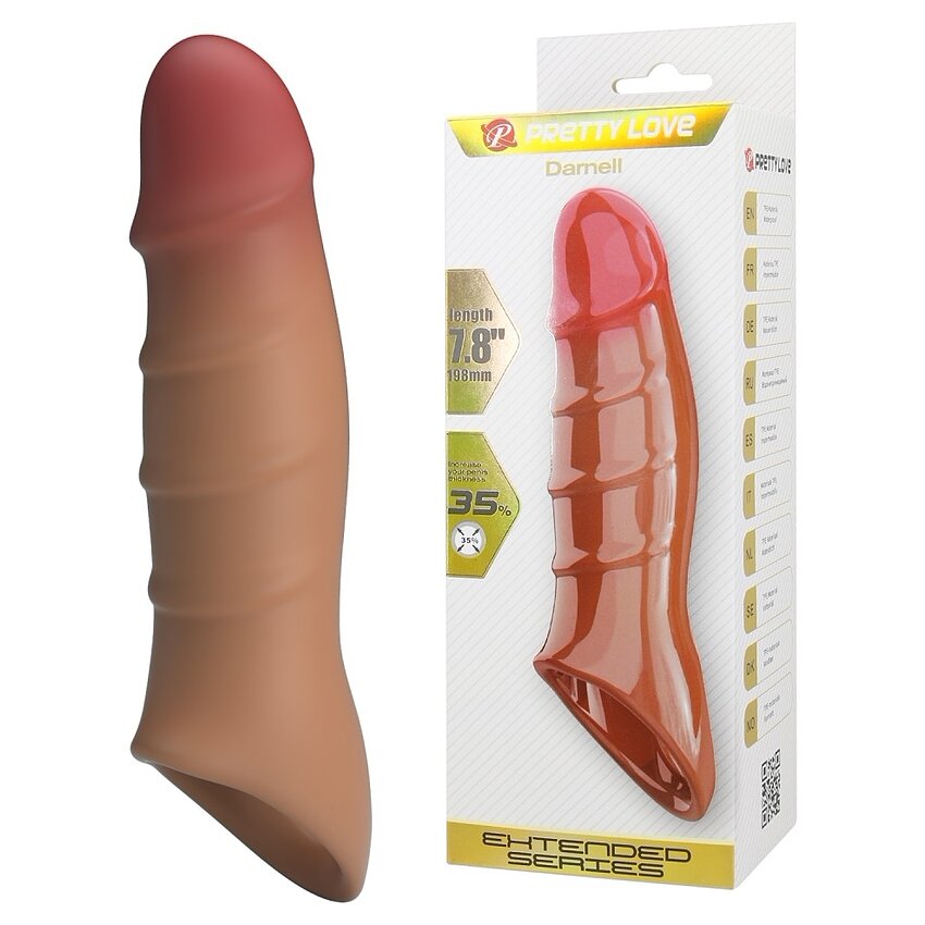 Manșon realist Pretty Love Damell Brown, din material ultra-realist, texturat cu vene și cap bulbous. Canal intern moale pentru contact optim și stimulare. Amplifică vizual dimensiunea penisului.