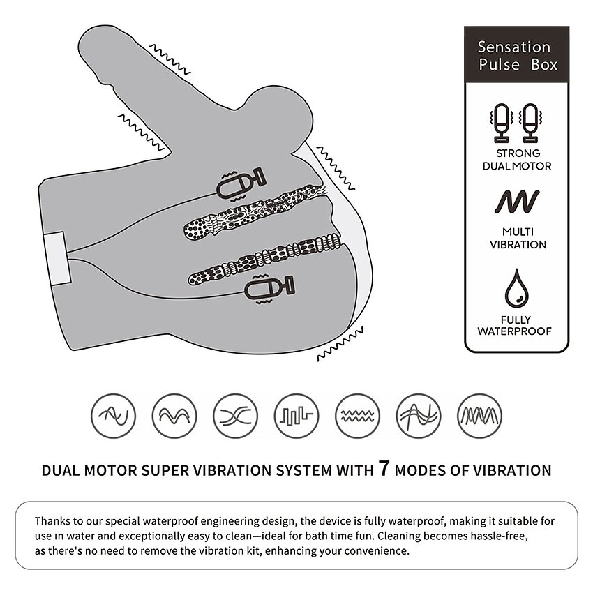 Beneficii și atribute: - Dual Motor: vibrații puternice și variate pentru intensitate ridicată - Design realist: canal detaliat și penis artificial integrat - Waterproof: utilizare în apă și ștergere facilă - Întreținere simplificată: modulul de vibrație rămâne montat - Accesoriu inclus: chilot cu ață Boudoir - Dimensiuni și greutate: stabilitate la utilizare