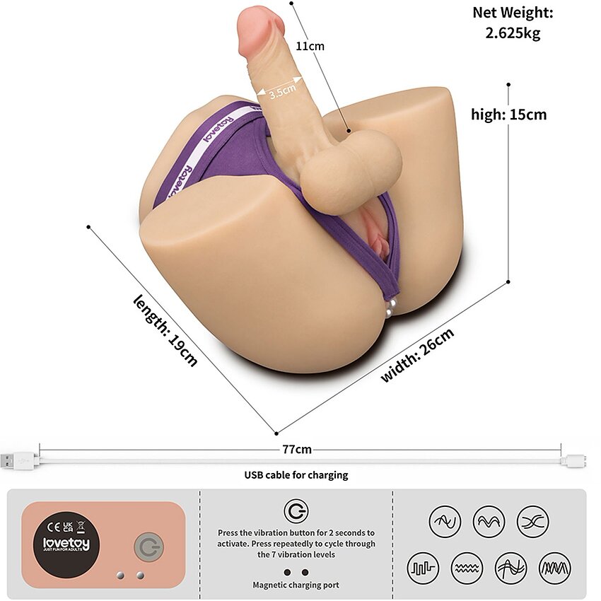 LoveToy Streetgirl: Dual Motor cu vibrații intense Sensation Pulse. Canal realist și dildo integrat, perfect viguros la apă. ștergere ușoară. Include tanga Boudoir. Dim: 19.5×25.5×15 cm, 2.62 kg.