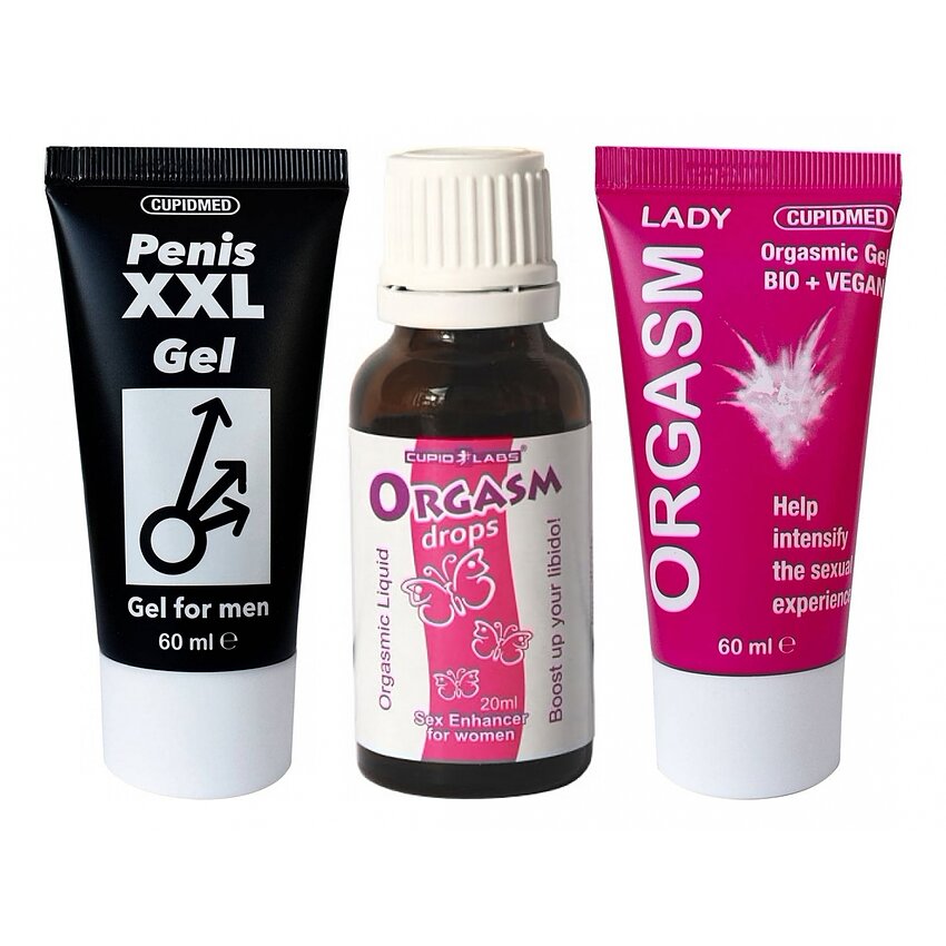 Detalii utile despre componente: - Gel pentru bărbați (60 ml): formulă ce surescitează circulația locală, punând la dispoziție senzație de forță și volum. Fixat cu vibrații ferme dar blânde, poate amplifica încrederea în timpul intimității. Utilizare recomandată regulată pentru consecințe vizibile în timp. - Gel pentru soții (60 ml): textură plăcută, hipoalergenică și privat de parfum; constituie emoții de încălzire și furnicături care sporesc percepția tactilă. Ideal pentru aplicare la începutul jocului intim, corespunzător cu alte produse intime. - Picături afrodiziace (20 ml): extracte naturale și vitamine gândite pentru a reactiva apetitul sexual; administrare simplă înainte de contact pentru a facilita dorința și forța trăirilor.