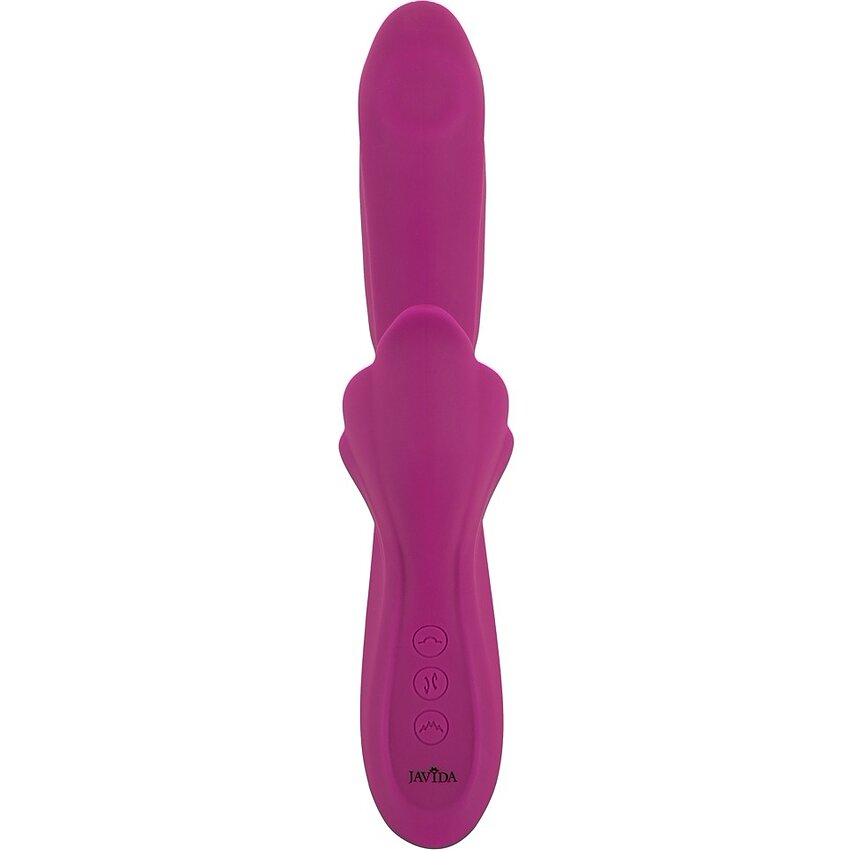 Vibrator dual JAVIDA cu 3 motoare: 7 trepte de împingere, 5 moduri de pulsații, 10 moduri de vibrație și încălzire rapidă. Silicon mătăsos + ABS, reîncărcabil USB, flexibil și silențios. Controale separate pentru combinații personalizate.