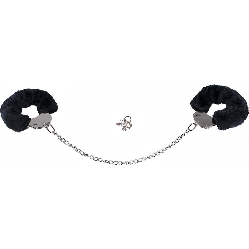 Cătușe metalice You2Toys cu husă detașabilă din pluș negru, lanț de 44 cm, diametru reglabil 7,4 cm, două chei și sistem de siguranță. Greutate 261 g; robuste, confortabile și simplu de folosit.