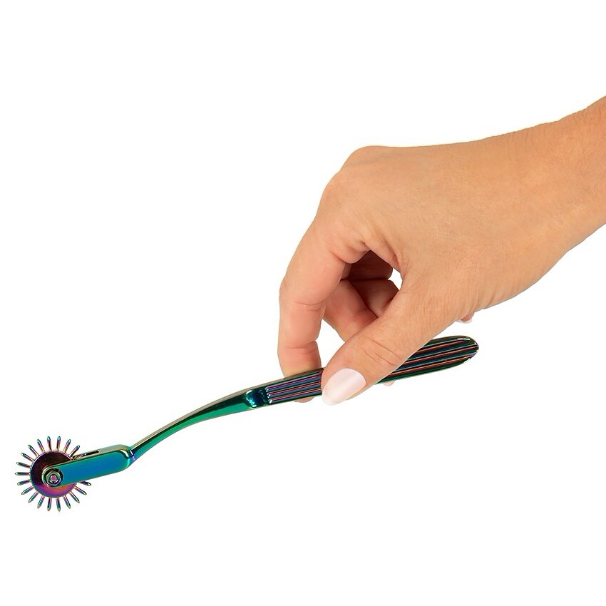 Roată pinwheel din metal, finisaj curcubeu, pentru control precis al intensităţii prin rulare pe piele. Mâner ergonomic, ace de 6 mm pentru senzaţii de la delicate la intense. Compactă şi uşor de întreţinut.