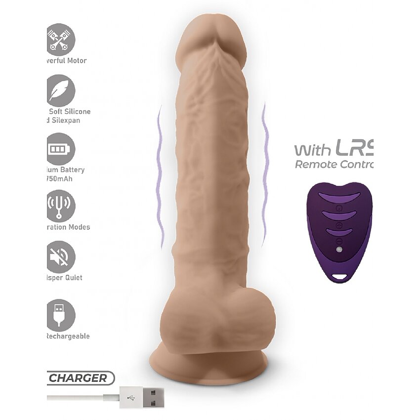 Beneficii și atribute concrete: - Material: silicon Silexpan, moale și ușor de curățat - 10 feluri de vibrație, control prin telecomandă (LRS) - Reîncărcabil, conține cablu USB; telecomandă cu baterie CR2032 - Autonomie: până la 180 minute per încărcare - Ventuză puternică pentru montare hands-free - Flexibil, cu efect de memorie pentru adaptare la formă - Rezistent la apă pentru igienă facilă - Dimensiuni: lungime desăvârșită 20 cm, diametru 4.3 cm - Greutate: 586 g - Potrivit pentru penetrare vaginală și anală