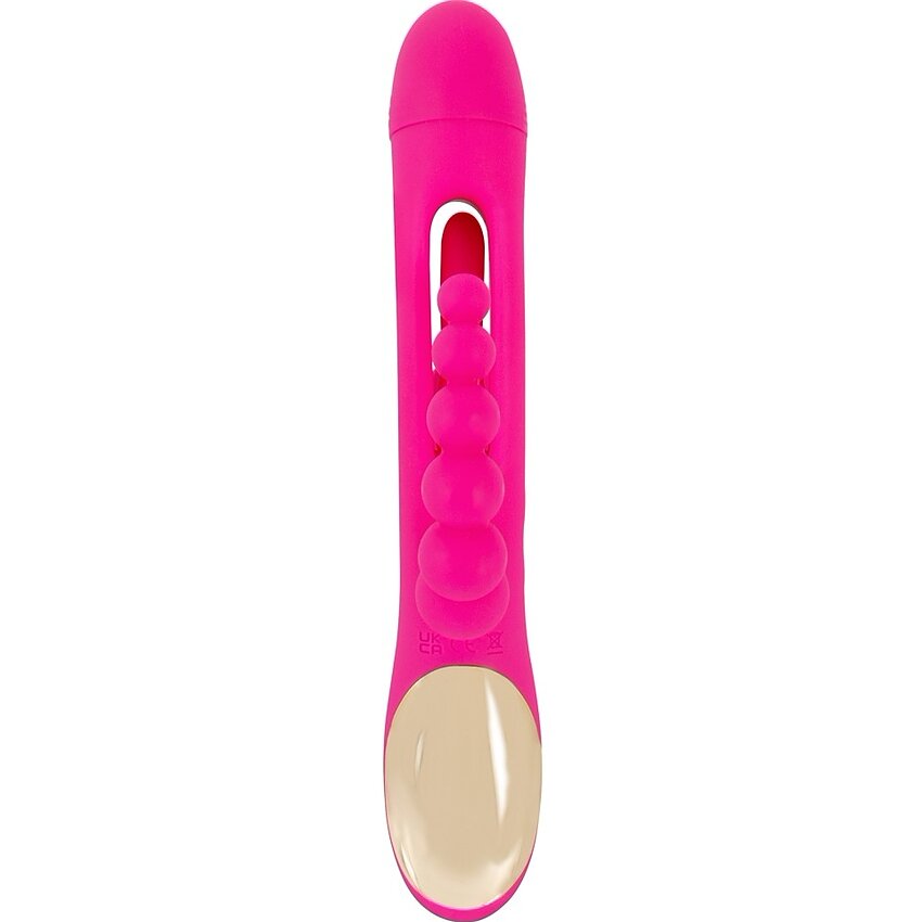 Triple Vibe Flicking de la Sweet Smile oferă stârnire triplă: interior, clitoris și zonă anală. Trei brațe cu 3 motoare silențioase, Flicking Tongue cu 7 viteze și 7 moduri, control separat, cu acumulator USB, silicon catifelat. Hands-free.