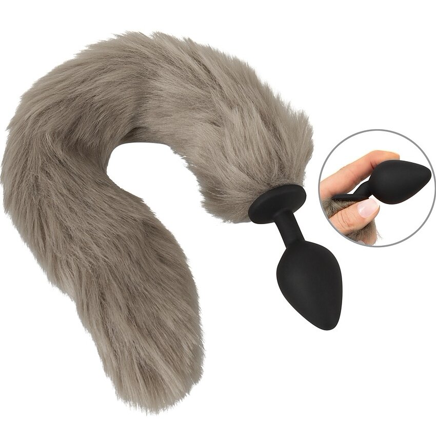 Beneficii și caracteristici: - Coada din blană sintetică gri, moale la atingere - Plug conic din silicon elastic pentru inserare facilă - Stopper larg pentru securitate în utilizare - Materiale compatibile cu pielea: silicon, acrilic, poliester - Lungime totală 45 cm; parte inserabilă 7.2 cm; calibru mare 3.5 cm - Greutate redusă: 81 g, fără greutate de purtat și manevrat