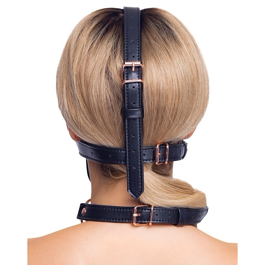 Caracteristici și beneficii: - Ajustare ușoară cu catarame reglabile pentru potrivire personalizată - Bila orală din silicon, calibru Ø4 cm, rezistentă și igienică - Material principal: poliuretan ecologic cu aspect de piele - Elemente metalice de culoare roz auriu pentru un finisaj elegant - Edificare durabilă, simplu de întreținut