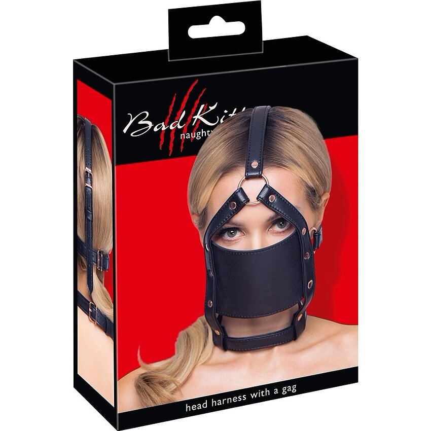 Hamul Bad Kitty, ajustabil, cu bilă din silicon Ø4 cm și aspect piele negru cu accente roz auriu. Catarame reglabile pentru o potrivire strânsă. Material: poliuretan ecologic și metal rezistent.