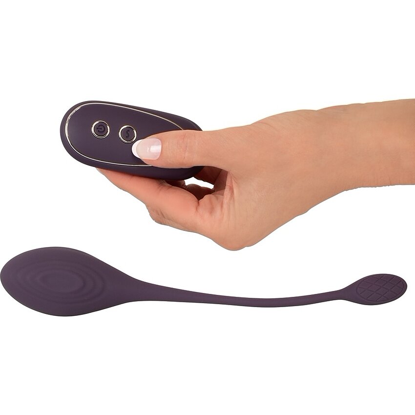 Ou vibrațional reîncărcabil cu 10 moduri de vibraţie, telecomandă wireless (raza 5 m), carcasă din silicon catifelat și corp ABS. Compact (61 g), insertabil 8 cm, diametru 3,9 cm. Rezistent la apă; husă şi cablu USB incluse.