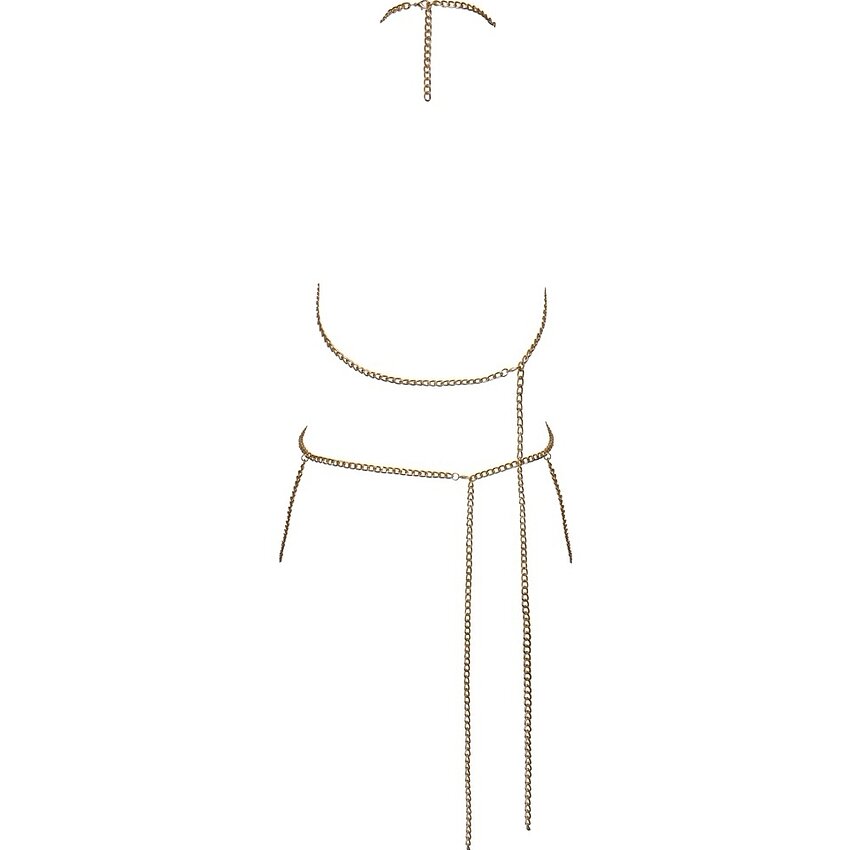 Crește un accent sofisticat oricărei ținute cu lanțul de corp aurit de la Cottelli Collection. Designul în două piese și decorul generos din lanțuri urmează contururile corpului, punând la dispoziție un rod elegant și luminos.