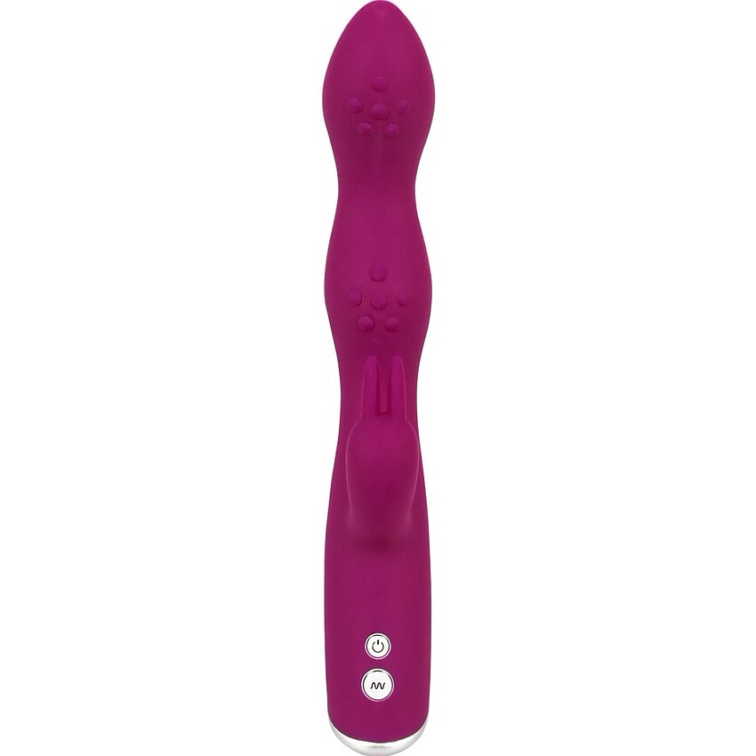 Sweet Smile Rabbit este proiectat pentru stimulare țintită a punctelor A (AFE) și G, combinând un shaft flexibil cu capete texturate și un stimulator pentru clitoris integrat pentru senzații mai concentrate.