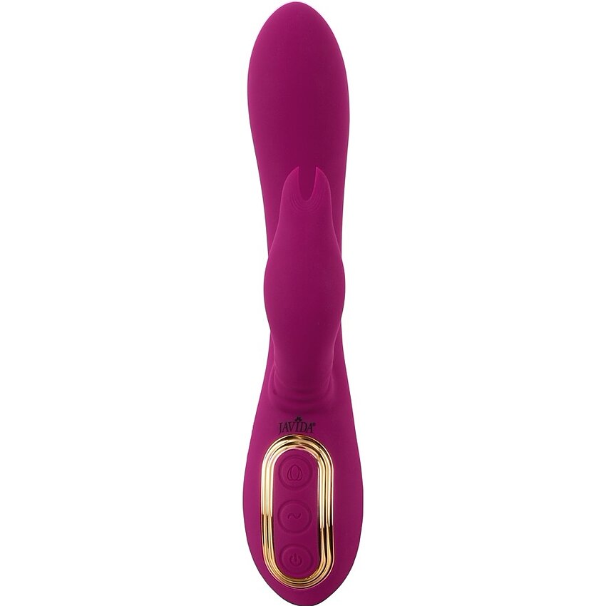 Vibrator reîncărcabil JAVIDA cu perle rotative şi stimulator clitoridian mobil: 10 moduri de vibraţie, 5 viteze de rotaţie, 3 motoare, silicon delicat şi rezistenţă la apă. Control intuitiv, compact şi discret.