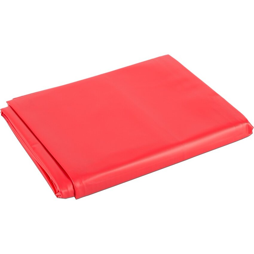 Cearceaf din vinil roșu, lucitor și impermeabil, dimensiuni 200 x 230 cm. Protejează suprafețele de lichide, se curăță ușor cu o cârpă umedă. Material rezistent 100% PVC; nu se spală la mașină.