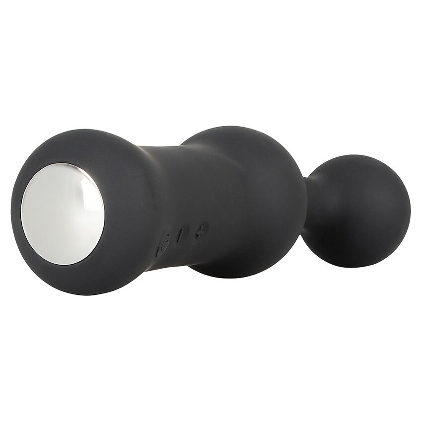 Vibrator pentru prostată Black Velvets: vârf flexibil, ușor îndoit și bilă mare pentru stimulare direcționată. 10 maniere de vibrație, arie moale și încărcare USB inclusă. Extindere radicală 18.9 cm, inserabilă 13 cm.