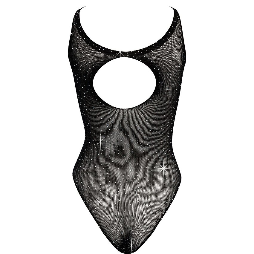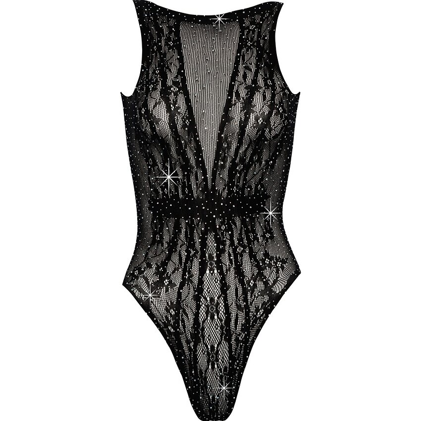 Body Cottelli Fantasy, semitransparent și elastic, acoperit integral cu strasuri. Croială fără cusături, decupare la posterior și potrivire universală S-L. Culoare: negru.