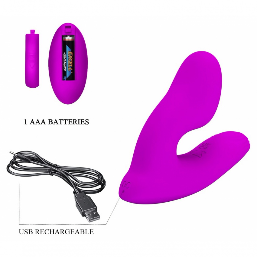 Dublu vibrator Pretty Love Melvin, cu ax îndoit pentru punctul G și masator clitoridian. 2 motoare sincronizate, 12 moduri, acoperire din silicon soft-touch, stil ergonomic și telecomandă. Ușor de folosit, discret și confortabil la atingere.