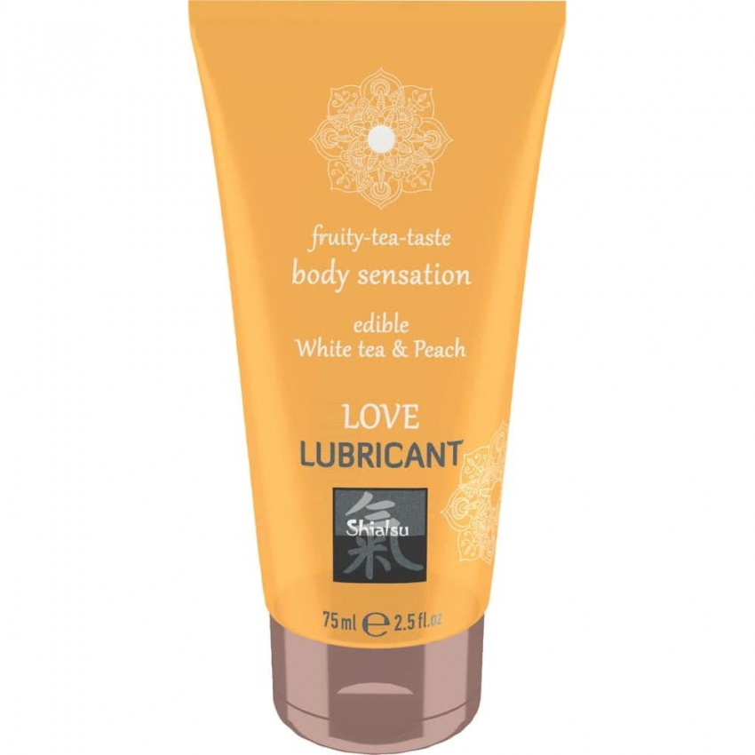 Agent de ungere pe bază de apă, comestibil, Shiatsu — mireasmă clară de ceai alb și piersică. Compatibil cu jucării sexuale și prezervative. Flacon compact 75 ml, se curăță ușor cu apă.