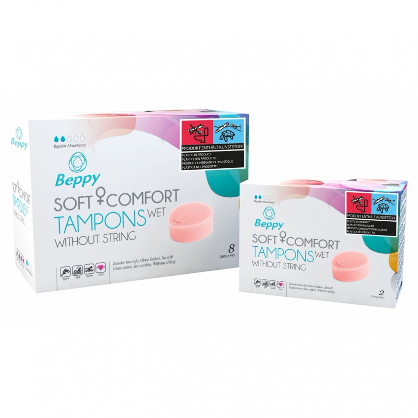Beppy Soft Comfort Wet este un tampon intern din spumă poliuretanică, proiectat pentru protecţie discretă în perioada menstruală. Varianta Wet conţine gel lactat care facilitează inserarea şi dă senzaţie uşoară de umiditate pentru manevrare mai confortabilă.