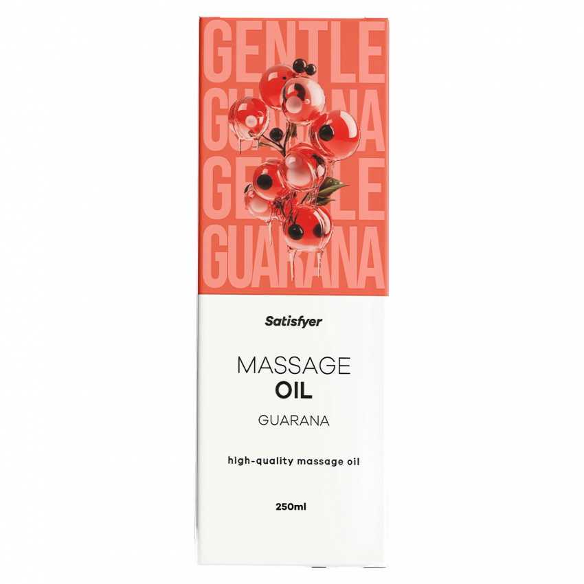 Ulei de frecție Satisfyer Guarana 250 ml: aromă caldă de cafea, ciocolată și vanilie. Textură mătăsoasă, glidare ușoară; hidratează și catifelează pielea. Formula delicată, potrivit pentru masaje și îngrijire personală.