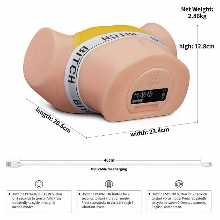 Carcasa este realizată din ABS solid, iar interiorul din TPE flexibil imită texturi realiste și se detașează pentru curățare facilă. Scoateți unitatea de aspirație înainte de a curăța canalul; clătiți cu apă curentă și lăsați la uscat înainte de asamblare.