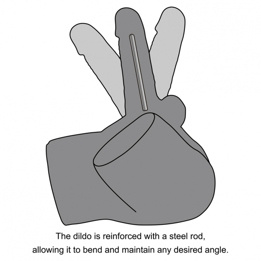 - Dildo articulat, susținut de tijă metalică reglabilă